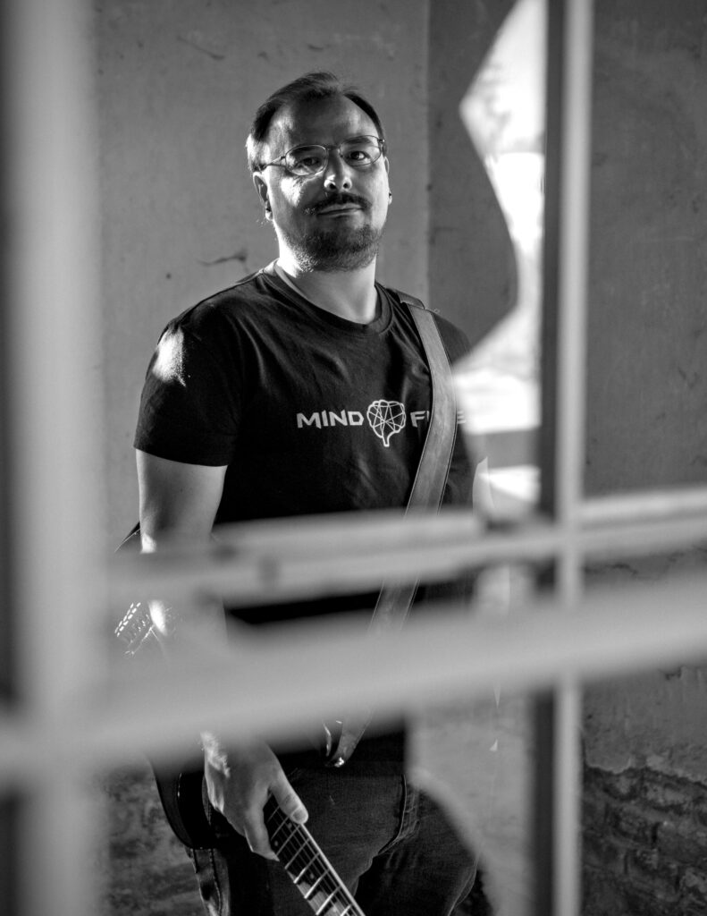 Seit den Gründungstagen von Mindfuse hat er den ruhigen und ausgeglichenen Pol der Band inne – auf der Bühne sorgt er allerdings dafür, dass alles bebt, brummt und ordentlich groovt.